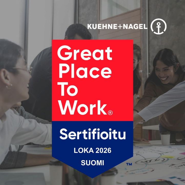Kuehne+Nagel Suomi on saanut Great Place to Work® -sertifikaatin jo kolmannen kerran peräkkäin. Great Place to Work® -sertifiointi perustuu vuosittain henkilöstölle toteutettavaan anonyymiin henkilöstötutkimukseen, jossa kartoitetaan työntekijöiden kokemuksia työpaikastaan.